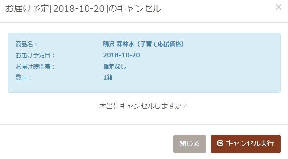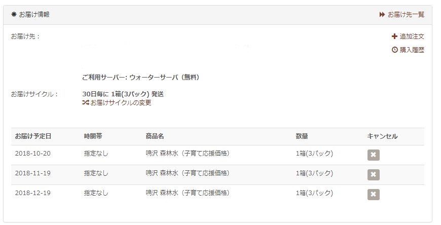 なので、とりあえずまだ水は持ちそうだなと思ったときは、とりあえずキャンセルしておいて、必要になったら水を注文する形にすると維持費を安く抑えることができます。